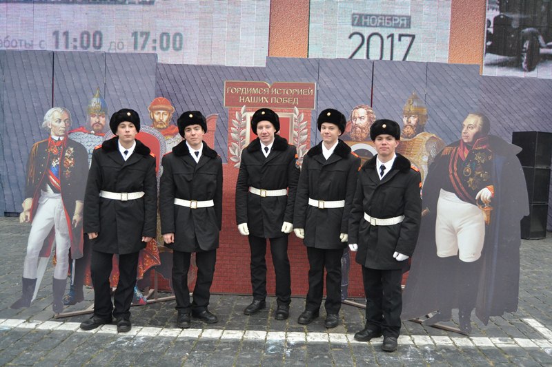 Максим Громов, Данила Щеглов, Виталий Тимофеев, Егор Эпов и Георгий Чернушкин шли наряду с военнослужащими российской армии, воспитанниками Суворовского и Московского военно-музыкальных училищ и кавалеристами президентского полка.
