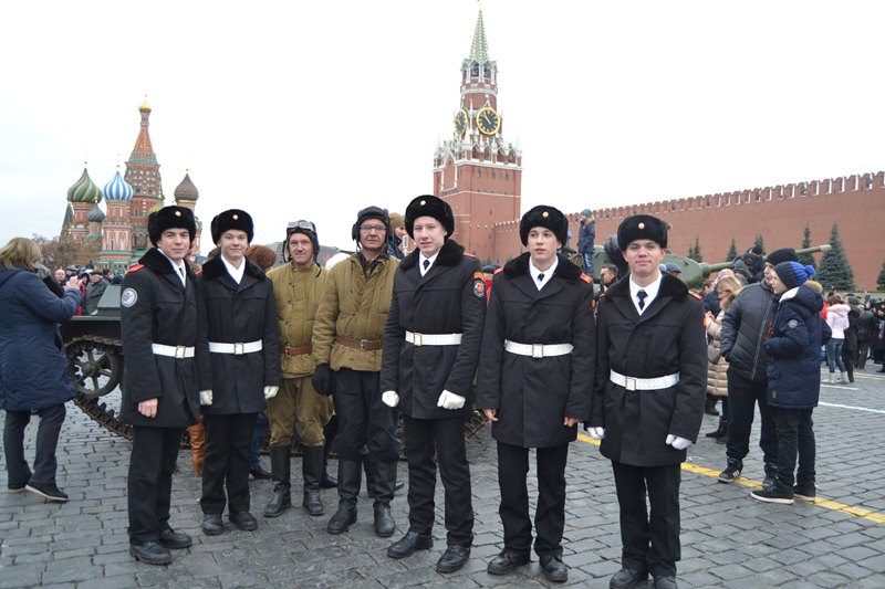 Кадеты школы №878 стали участниками праздничного марша в честь 76-й годовщины военного парада 1941 года, который прошел на Красной площади во вторник, 7 ноября.