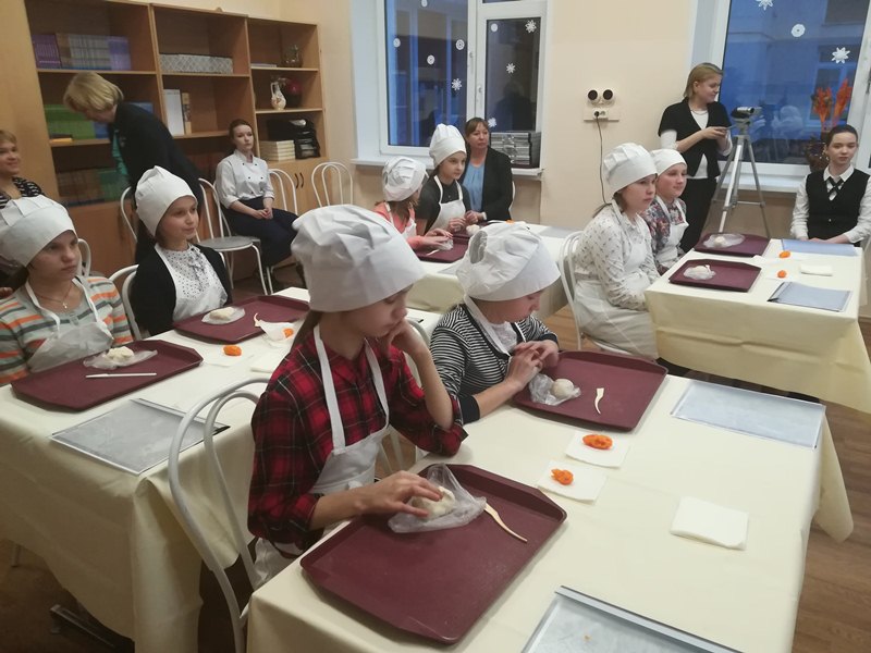У каждого студента была своя задача. Екатерина Супрунова провела для шестиклассников мастер-класс по карвингу – мастерству вырезать из фруктов и овощей красивые фигуры. Вячеслав Быков вместе с детьми «испек» елочные игрушки-собачки из теста. А Евгения Фетисова показала, как красиво сложить салфетки.