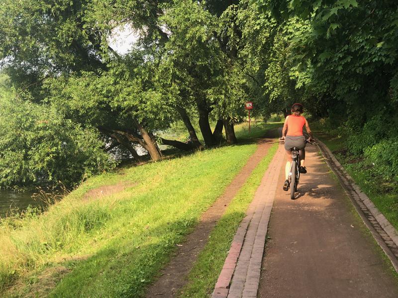Конечно, купаться запрещено. Кое-где вдоль берега загорают люди. Местами в траве черными дырами зияют места от кострищ. (А ведь при входе на территорию пруда стоит стенд, где написано о запрете разведения костров!) По берегу то там, то здесь расположились одиночные фигурки рыбаков. Ловят так, для души, кошкам полакомиться. Мой пес вдруг оживился, уткнулся носом в траву и рванул вперед. Рыбаки предупредили: «Смотрите, здесь крыса бегала недавно!» Кричу: «Чарли, крыса нам не нужна!» Мой охотник возвращается, и мы идем дальше по дорожке, любуясь пейзажами Нижних Царицынских прудов. Это место подходит для уединенных прогулок, но скамеечек не много (территория большая – в некоторых местах их нет вообще), хотя при желании отдохнуть можно. Лесопарк с холмами, оврагами, полянками пользуется популярностью у москвичей, но до сих пор он не благоустроен окончательно. О проблемах местных спортсменов рассказала нам Мария: