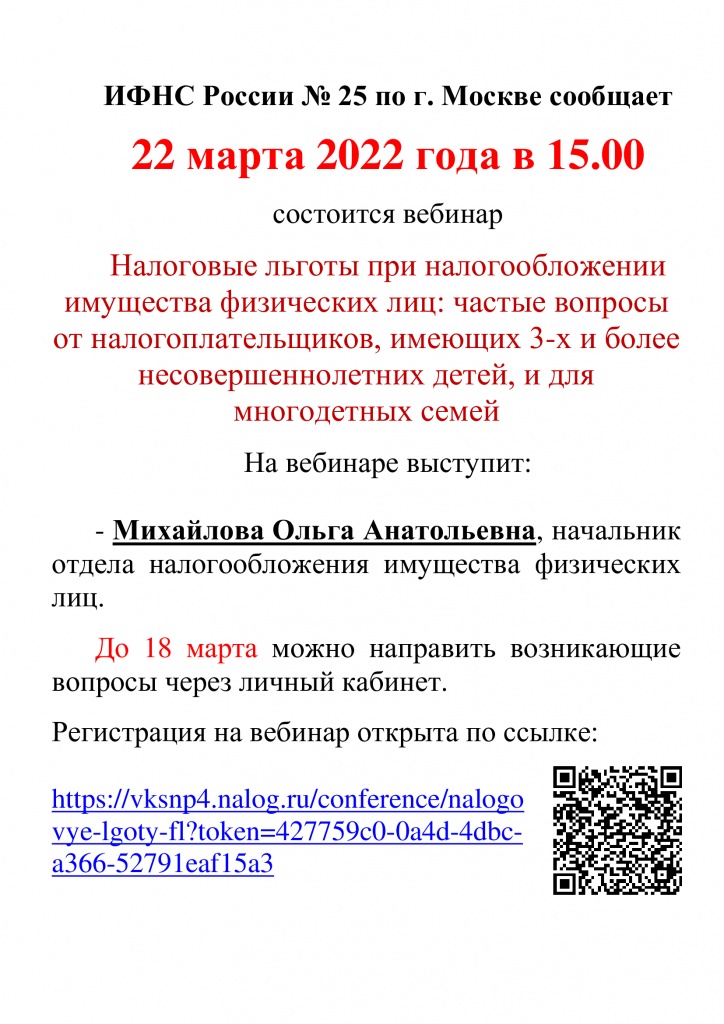 Вебинар: частые вопросы от налогоплательщиков, имеющих 3-х и более несовершеннолетних детей, и для многодетных семей