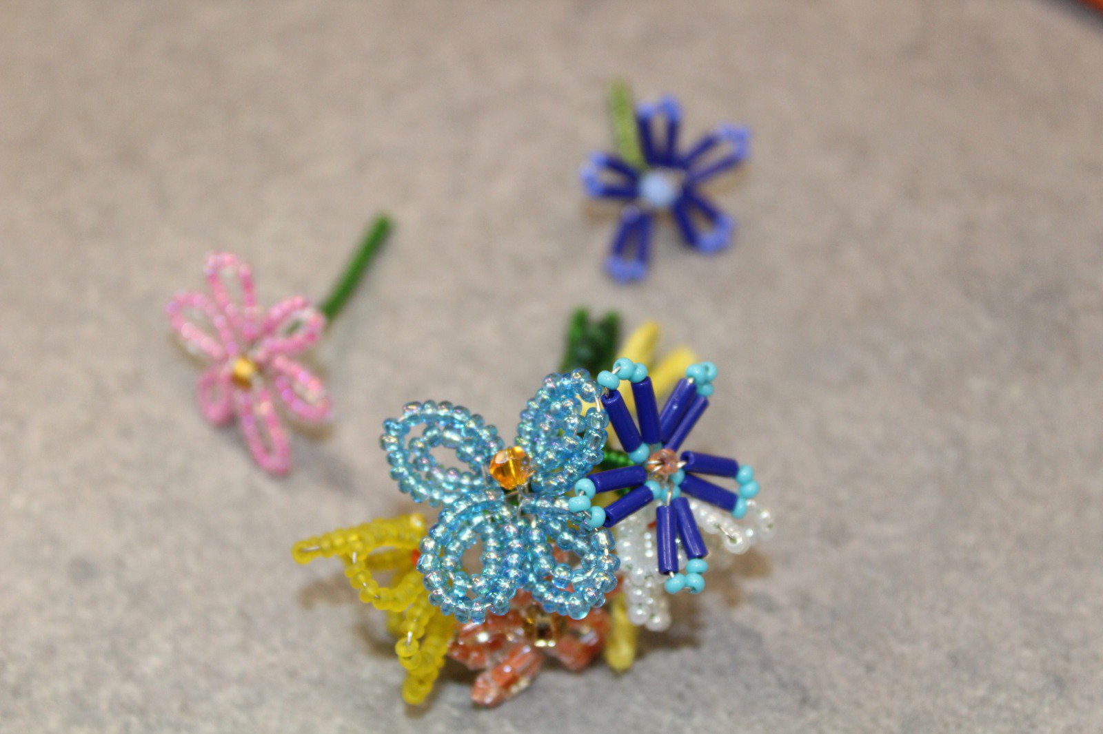 Участники сделали броши из бисера и натуральные камней, которые придадут изюминку любому образу. На них они изобразили букеты летних цветов.